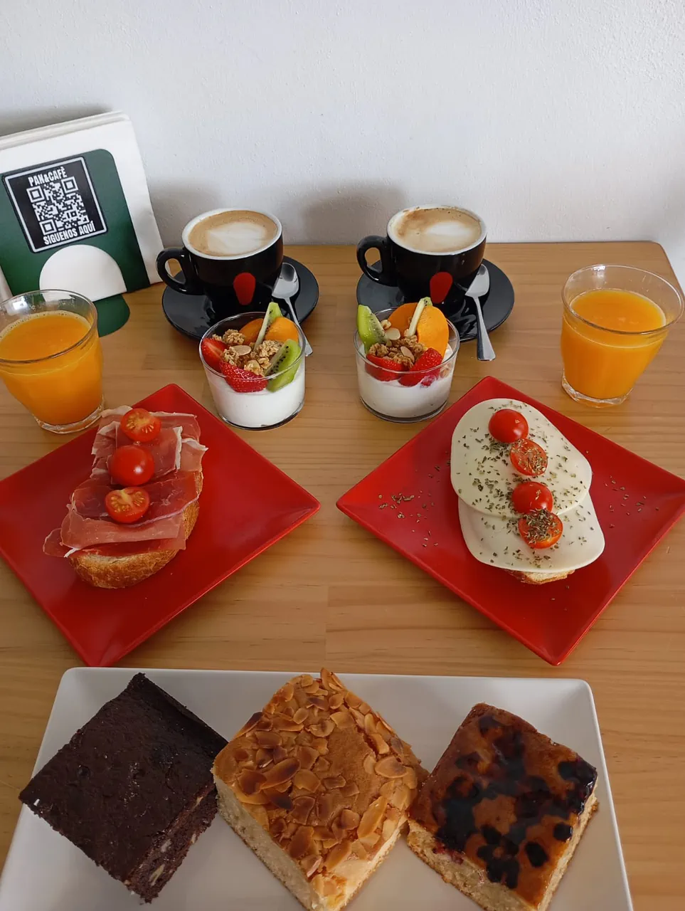 Disfruta de un brunch VIP pensado para saborear sin prisas, ideal para media mañana o mediodía. Incluye café gourmet 100% arábica o té de sabores especiales, zumo natural de naranja y un surtido de bizcochos caseros: sin azúcar, brownie y espelta con frutos rojos.
