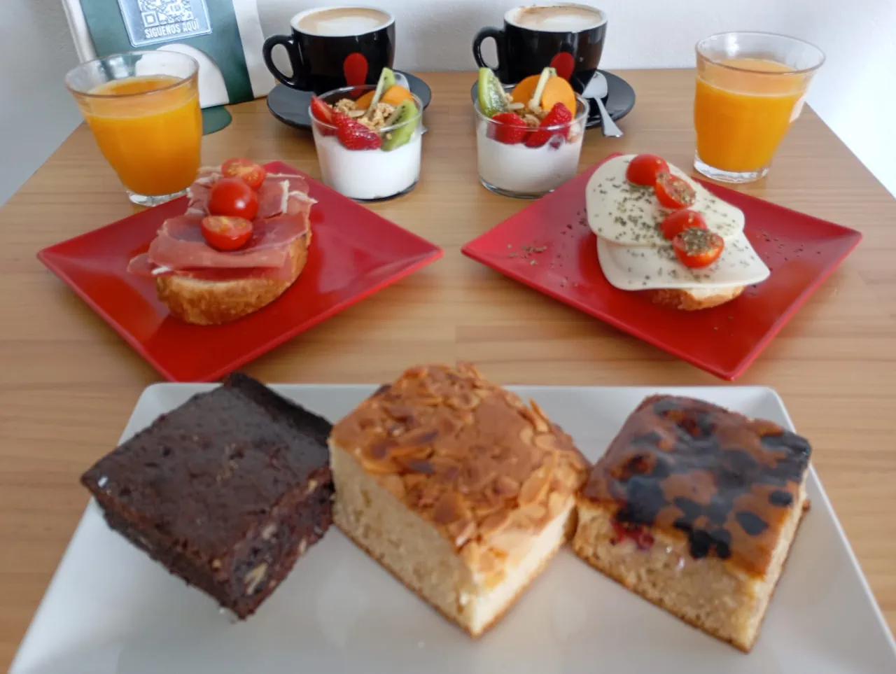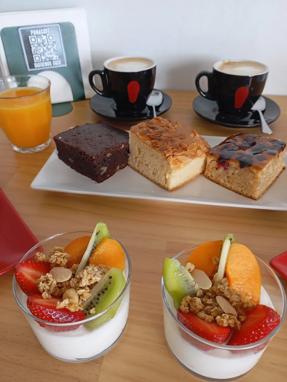 Enjoy a VIP brunch designed to be savored without rushing, ideal for mid-morning or noon. Includes gourmet coffee 100% Arabica or special flavored tea, fresh orange juice and an assortment of homemade cakes: no sugar, brownie and spelled with red berries.